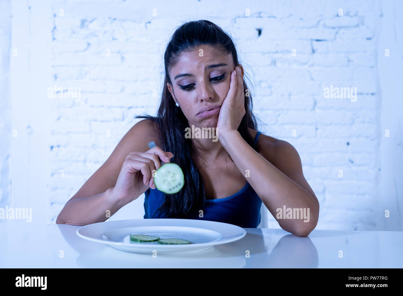 Portrait O F Young Attractive Woman Feeling Sad And Bored With Diet Not Wanting To Eat Vegetables Or Healthy Food In Dieting Eating Disorders And Weig Stock Photo Alamy