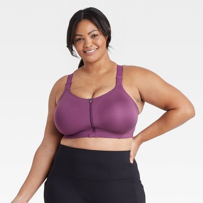 Women S Plus Size Medium Support Mesh Back Zip Front Bra All In Motion Dark Plum 44c Target