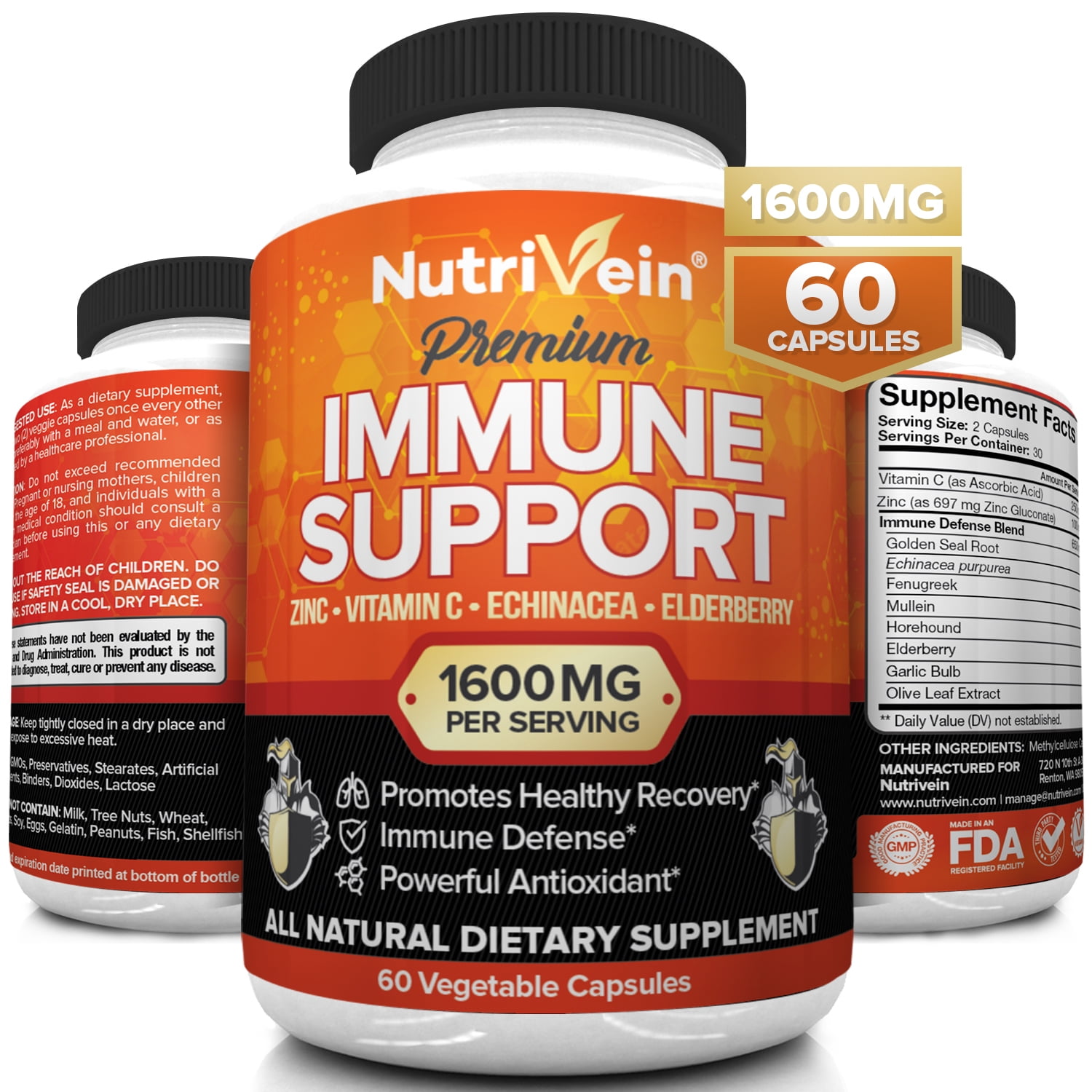 Nutrivein Immune Support Boost Your Immune System With Elderberry Zinc Vitamin C Garlic Echinacea Prebiotics 1600mg Daily Dose Supports Healthy Respiratory System And Stress 60 Capsules Walmart Com Walmart Com